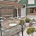 Dvorište popločano ciglom, kuća na lakat, šareni karirani